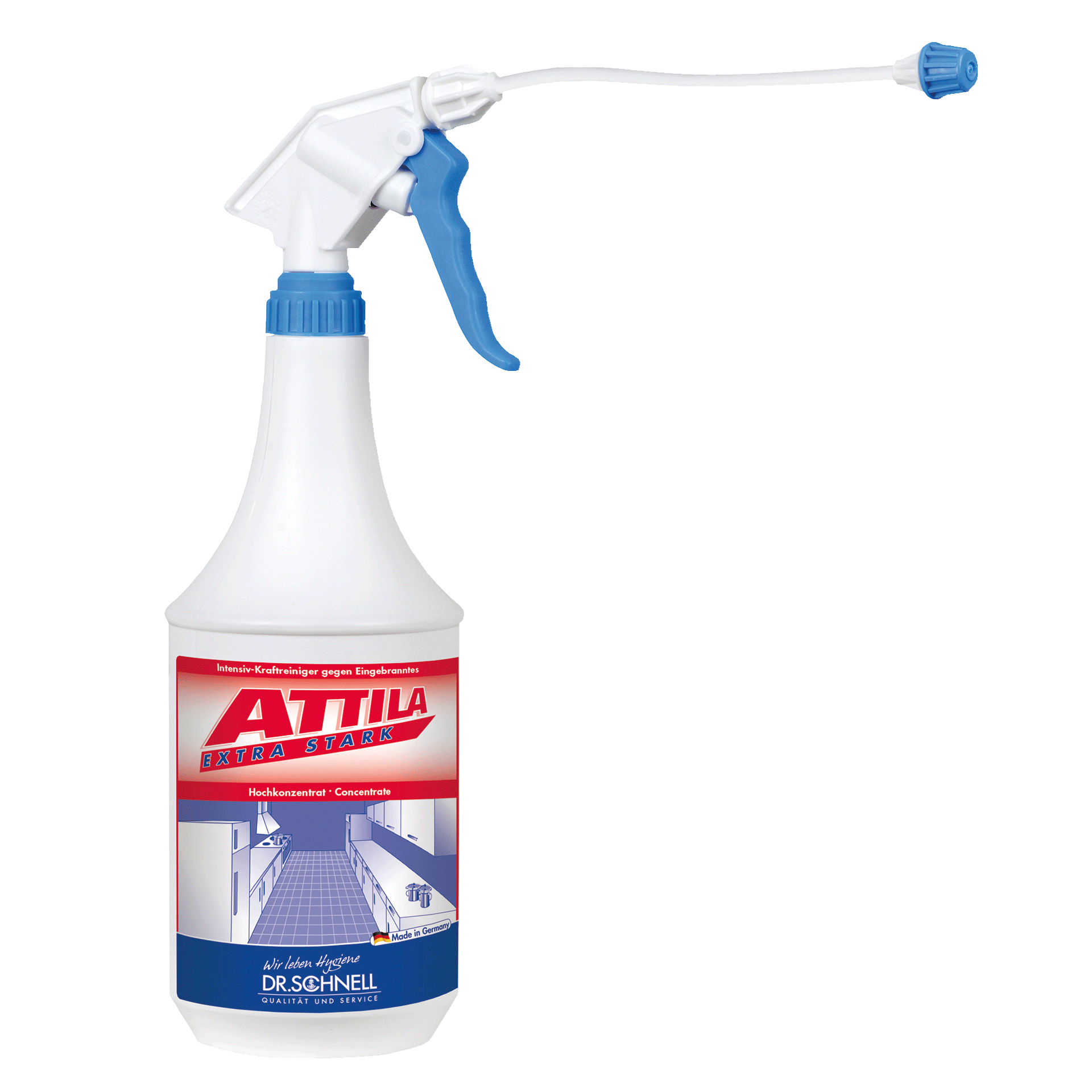 ATTILA EXTRA STARK (Attila Ekstra Tugev) firmalt DR.SCHNELL on intensiivne kõrbenud jääkide eemaldamiseks mõeldud puhastusvahend, mis sobib kiireks, usaldusväärseks ja intensiivseks puhastuseks tugevalt määrdunud köögiseadmetel ja toiduainetöötlemisruumides: